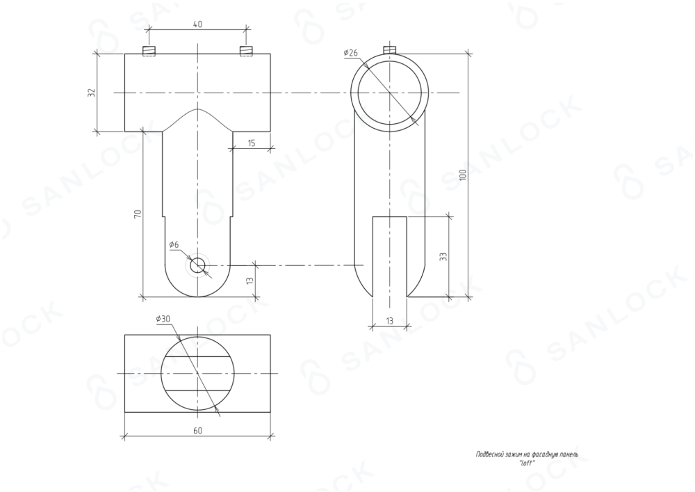 Подвесной зажим серии "Loft" ,фасад панель, нерж. сталь, цвет Черный, заполнение 12мм, труба 25 мм.